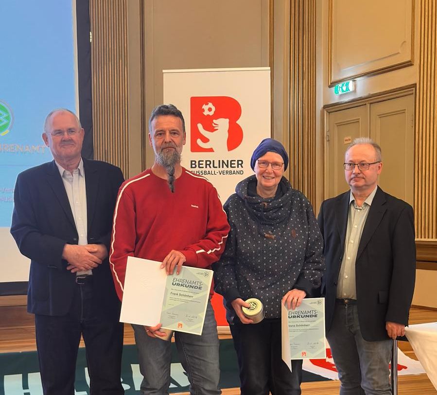 Eine Einladung zu dieser Veranstaltung folgten am letzten Sonnabend Irena und Frank Schönherr, die für ihre inzwischen schon jahrzehntelange ehrenamtliche Arbeit mit und für die Kinder und Jugendliche in unserem Verein, dem TSV Mariendorf, durch den Präsidenten des Berliner Fußball Verband, Bernd Schultz, geehrt wurden.