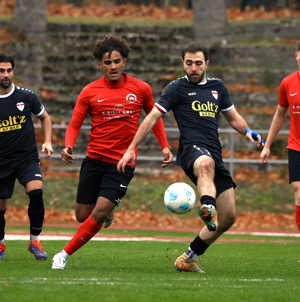 Türkspor war oftmals einen Schritt schneller, wie hier im Duell mit Bendrix Kadji (Foto Robert Eschrich)