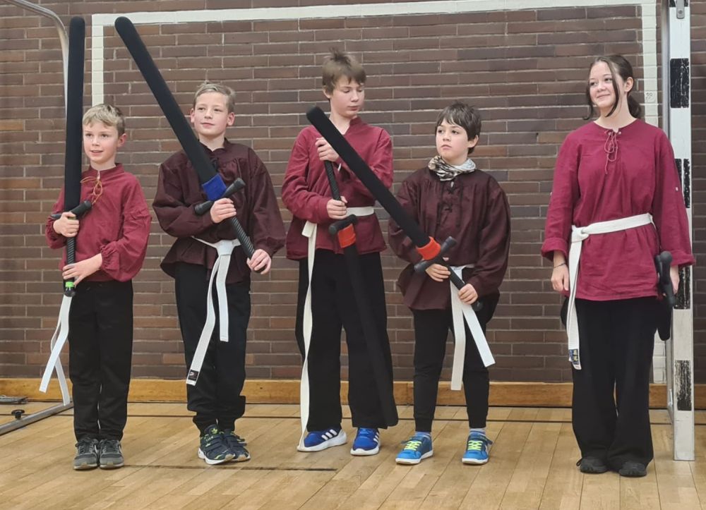 Unsere fantastischen drei Sieger der Vereinsmeisterschaft 2025 im Historischen Schwertkampf! Links Emilia (Kinder/U14), Mitte Josepha (Damen) und Rechts Yannick (Männer)! Die Vereinsmeisterschaft 2025 wurde in 5 Einzelkategorien im Doppel-K.O.-System ausgetragen: