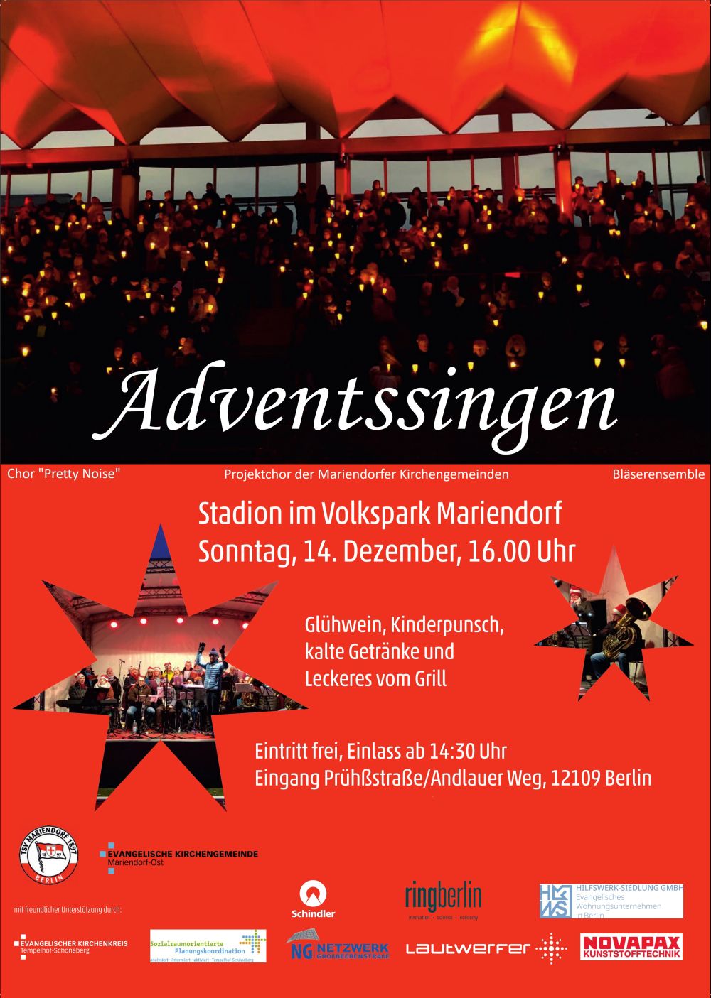Traditionell am dritten Advent, der in diesem Jahr auf Sonntag den 14.12. fällt, findet ab 16 Uhr, das Mariendorfer Adventssingen in Kooperation mit der evangelischen Gemeinde Mariendorf Ost statt.