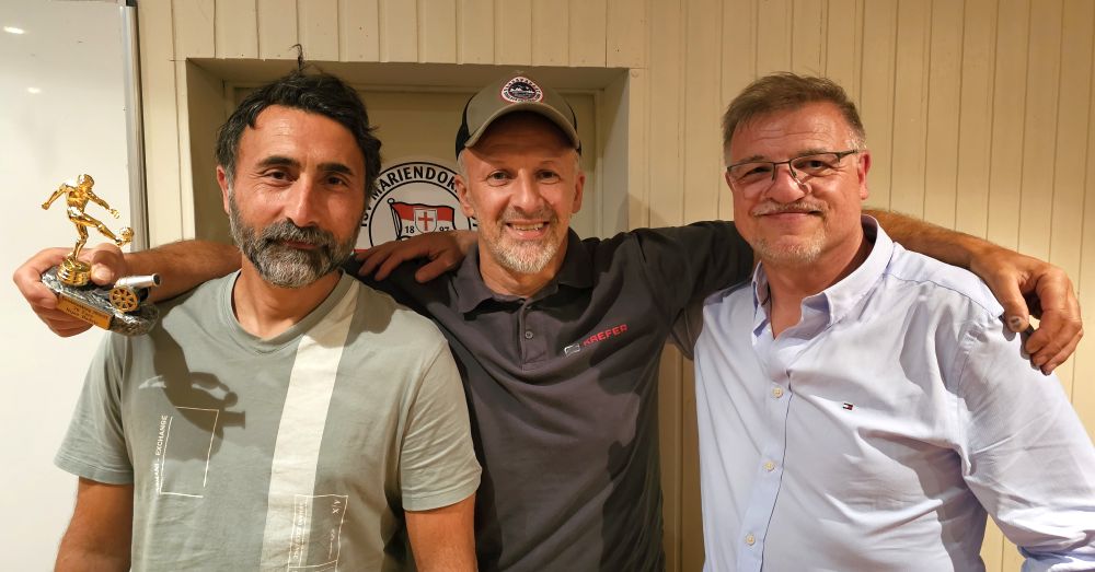 Nach der Saison ist vor der Saison. Bei der Abschlusssitzung der Ü 50 I in unserem Sportcasino in der Rixdorfer Str. wurden die Weichen gestellt für die neue Berlin Liga-Saison. Wichtigster Baustein war der Verbleib des Torjägers Nijaz Hadzic (Foto mitte), der in dieser Saison sich ein mal mehr die Torjägerkanone mit insgesamt 70 Treffern! (60 in der Liga und 10 im Pokal), sichern konnte.