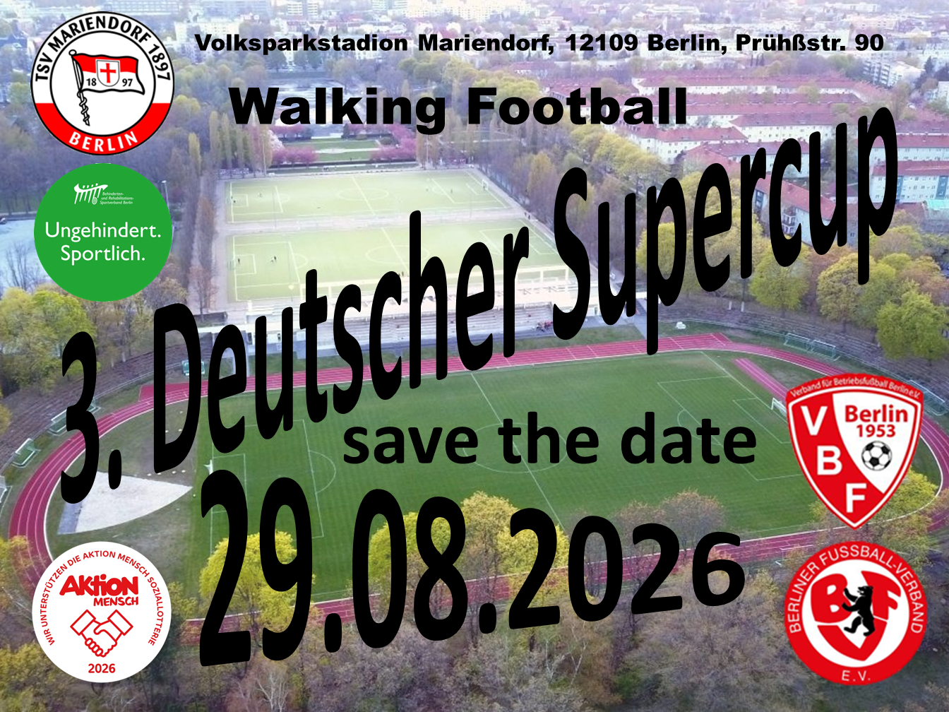 Wir freuen uns sehr auf die Zusammenarbeit und hoffen auf zahlreiche Zuschauer beim 3. Deutschen Walking Football Supercup am 29.08.2026 im Volksparkstadion Mariendorf, der Eintritt ist frei.